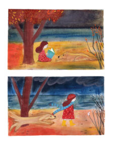The author | Eleni Tsaldiri studied painting at the Academy of Fine Arts of Venice, in the historical workshop of the Futurist Emilio Vedova. Her studies continued at the 2nd Engraving Workshop of ASFA in Athens and at the Graphic Arts Workshop "The Art of the Book". Her constant search for writing in relation to the illustration of books aimed at children lead her, in 2008, to England, at the Cambridge School of Arts, as part of a postgraduate program, with the help of the Greek State Scholarship Foundation. Since 1997 she has been working as an art teacher in primary education and in creative workshops. Since 2010 she has been present in the writing field as a creator of visual series and books for children.